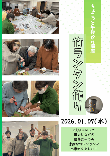 1月7日(水)ちょこっと午後から講座 竹ランタン作り